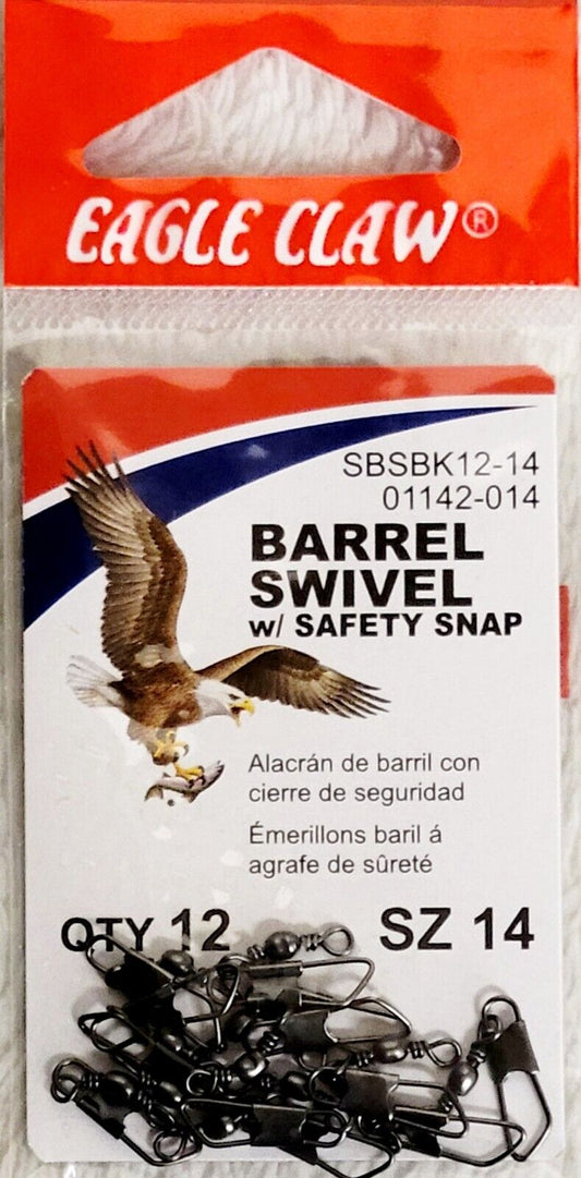 * LOT of 12* Eagle Claw Barrel Swivel w/ Safety Snap SBSBK12-14 01142-014 Size14